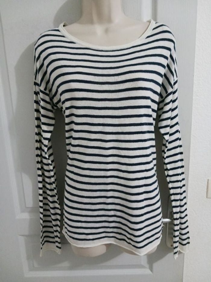 Pull neuf, taille 38,bleu marine et blanc.