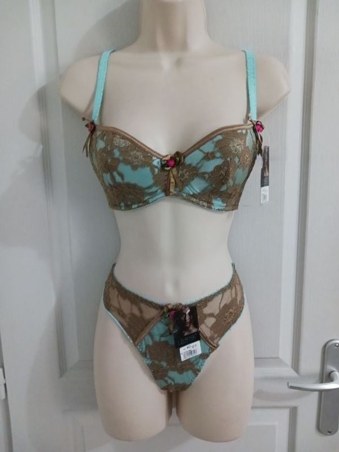 Ensemble neuf, taille 40,90C, turquoise et brun doré. Marque LD Rose