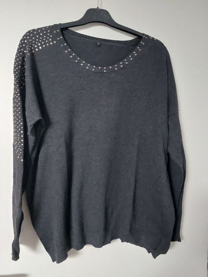 Longueur 67 cm et 67 cm aisselle à aisselle Manque 2 perles/clous devant Matière qui s'ebouloche un peu