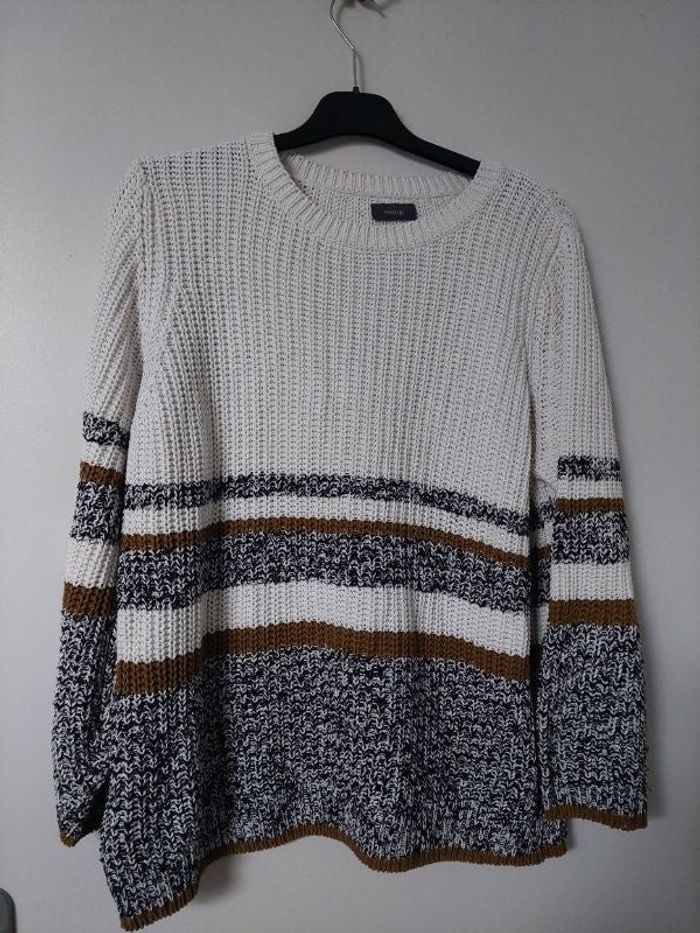 Taille plus grand Longueur 63 cm et 63 cm aisselle à aisselle S'ebouloche un peu sur les manches