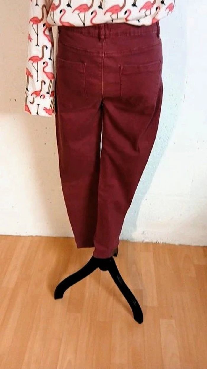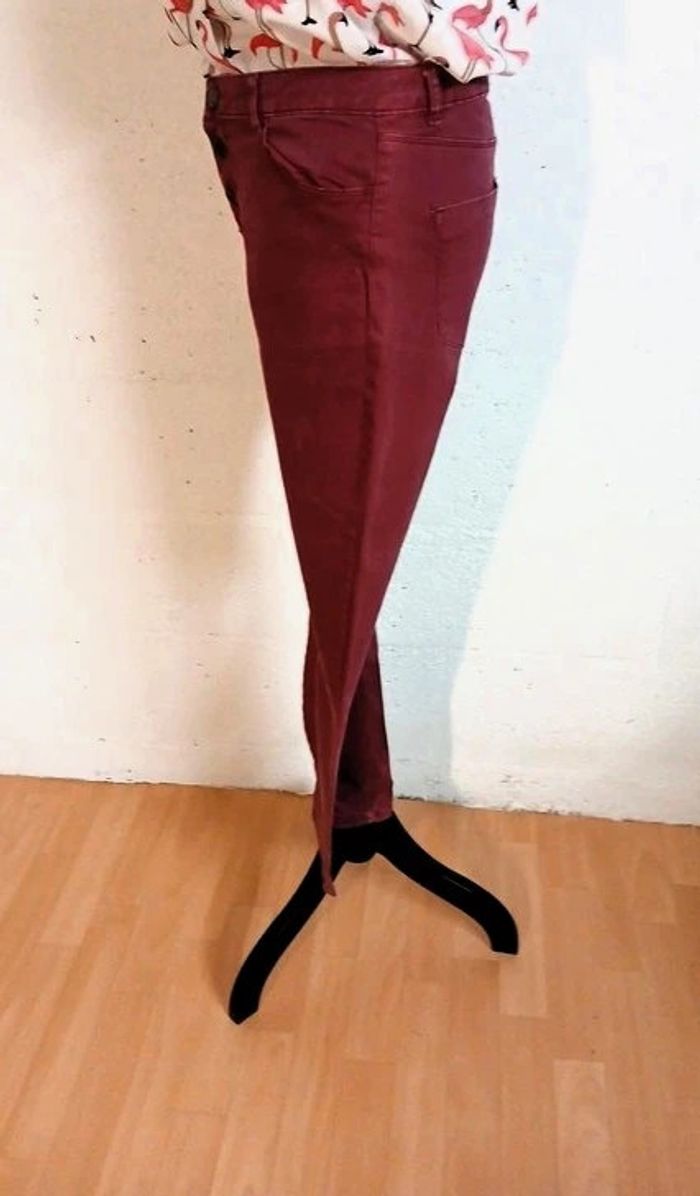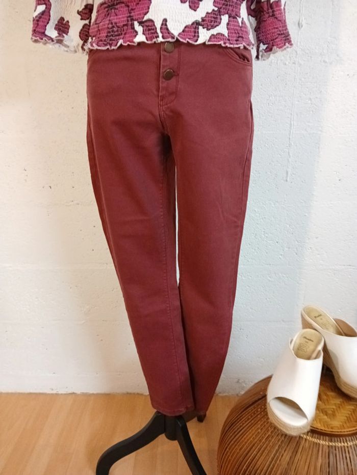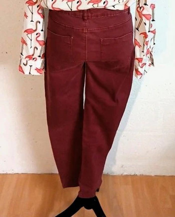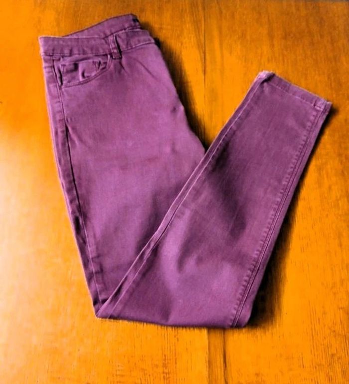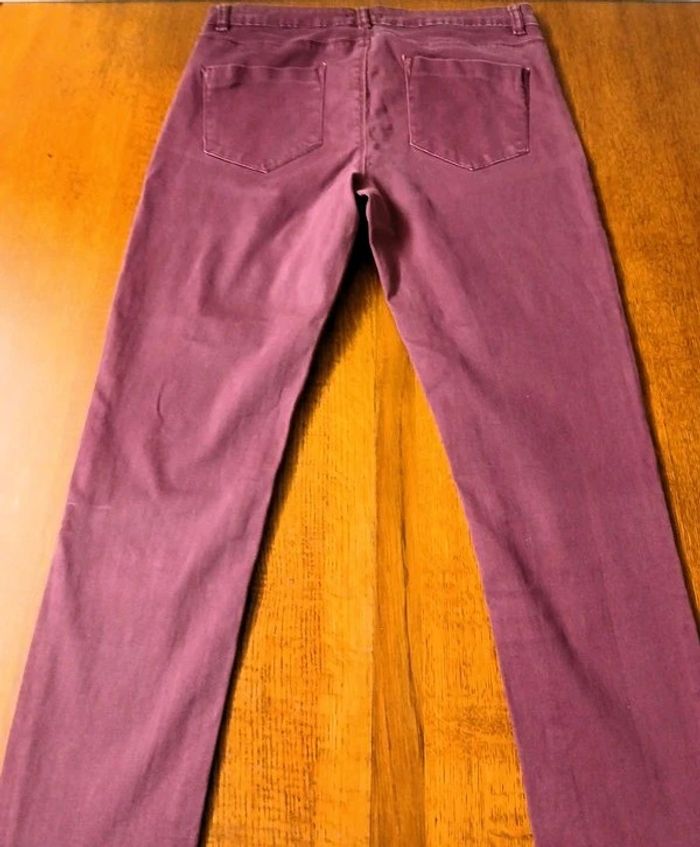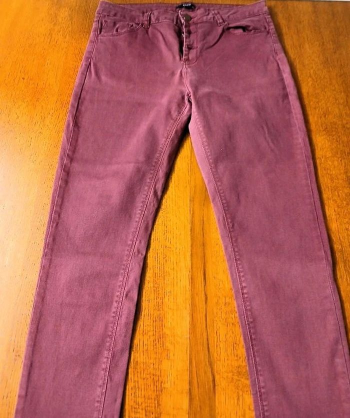 Jeans coupe skinny Marque kiabi Bon état Couleur rose/ bordeaux Largeur taille à plat 40 cm Longueur jambes 95 cm Autres articles à retrouver en vente séparément dans mon dressing : Blouse BEACH WEAVE 40/42 Espadrilles BATA pointure 38 🌈 Pensez au lot afin de limiter les frais de port mais aussi pour faire des économies car les réductions sont actives dès 2 articles 😍