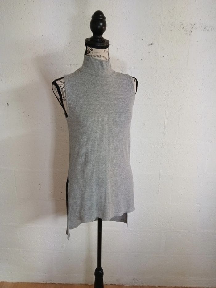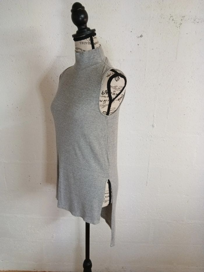 Petit haut gris GEMO Fentes de chaque côté plus long derriere col montant matière fine, mais plus d'étiquette a été coupée taille M Largeur aisselles 41 cm Longueur devant 63 cm Longueur dos 79 cm 🌈 Pensez au lot afin de limiter les frais de port mais aussi pour faire des économies car les réductions sont actives dès 2 articles 😍 🌈