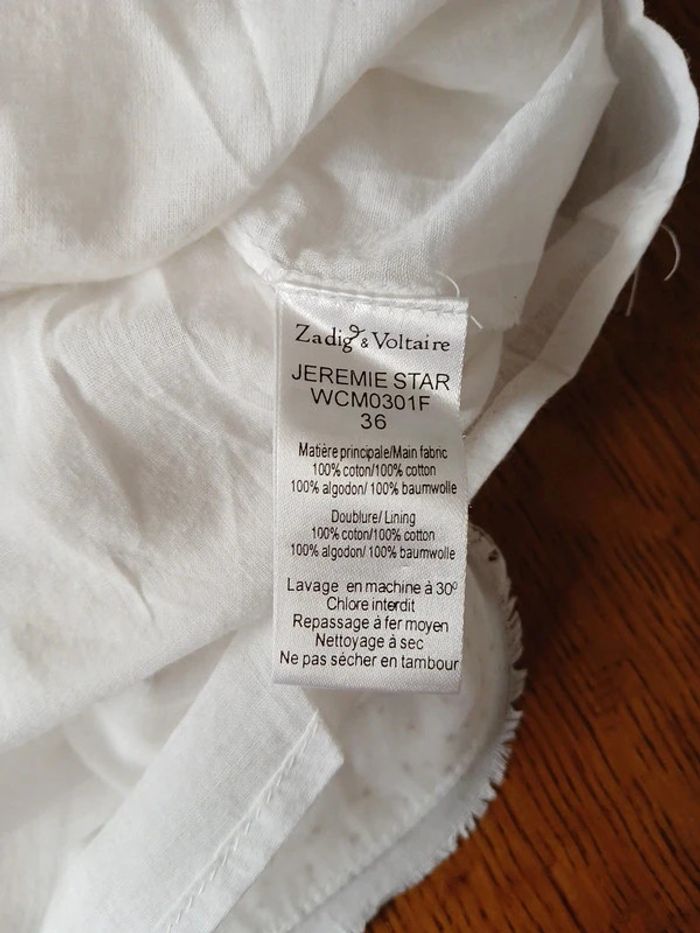 Jupe courte Zadig & Voltaire en coton léger, blanche avec motifs étoiles. Modèle fluide, doublé, confortable à porter au quotidien comme pour un look bohème chic. Taille 36, ceinture avec cordon de serrage ajustable, sans couture apparente en haut et en bas. Longueur : 42 cm. État : Portée plusieurs fois, d'où la mention "satisfaisant", mais reste en bon état général. 💡 Astuce : 🌈 Pensez au lot ! Dès 2 articles achetés, des réductions automatiques s’appliquent. L’occasion de faire des économies et de limiter les frais de port ! 😍 #zadigetvoltaire #jupeblanche #jupefemme #coton #bohemechic #motifétoile #taille36 #jupecourte #été #modefemme #stylecasual #vêtementsmarque