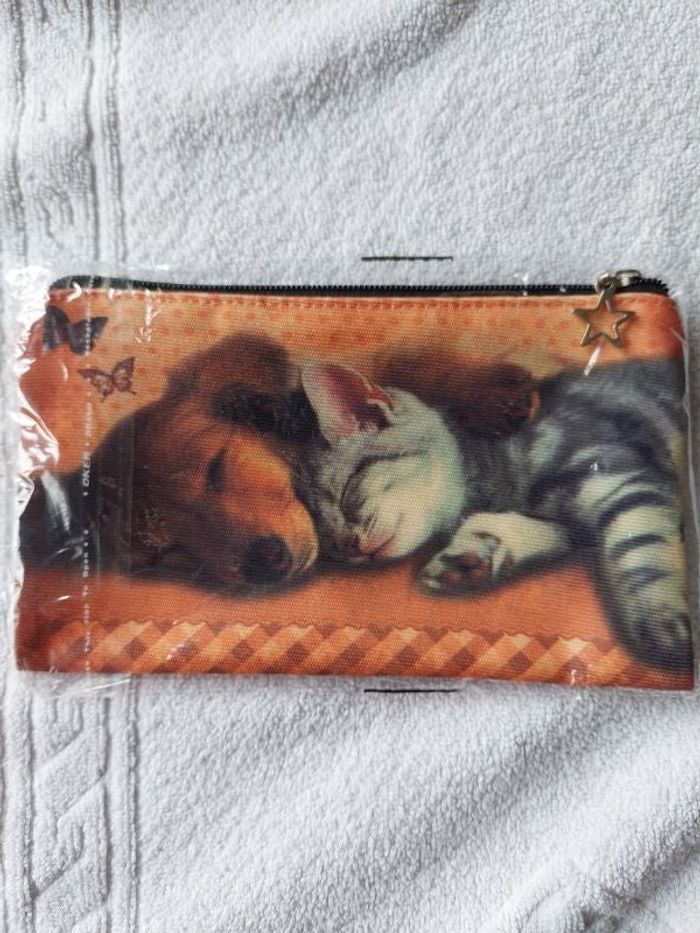 Trousse/pochette avec fermeture éclair + charm 25 % coton et 75 % polyester Dimension 20 x 12 cm Plusieurs articles disponibles