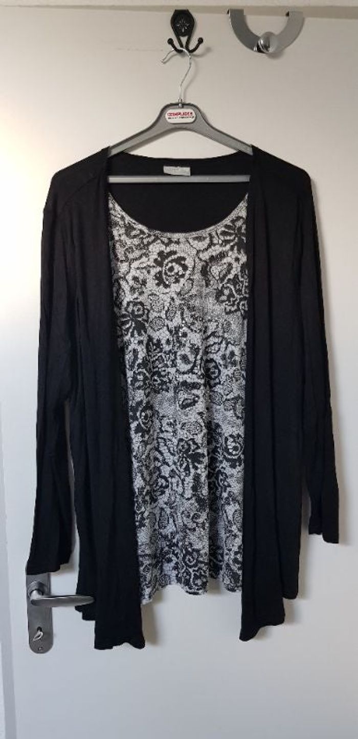 Jamais portée juste lavée après l'achat. Longueur 78 Cm et 64 cm Effet 2 pièces mais c'est pas détachable.