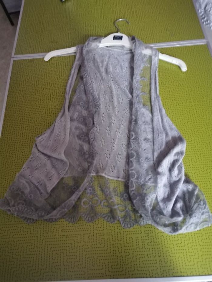 Petit gilet debardeur fantaisie et dentelles manches courtes gris t 36