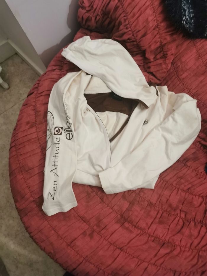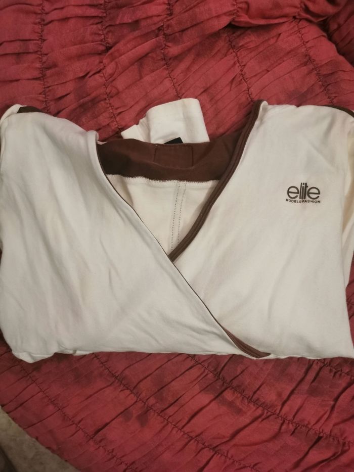 Polo manches longues fantaisie avec motifs et col V,  avec capuche, taille croisé devant - photo numéro 4