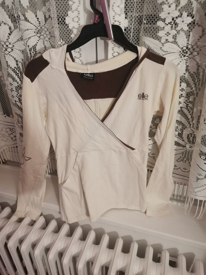 Polo manches longues fantaisie avec motifs et col V,  avec capuche, taille croisé devant - photo numéro 1