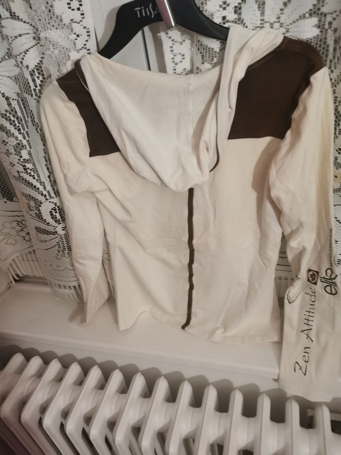 Polo manches longues fantaisie avec motifs et col V,  avec capuche, taille croisé devant - photo numéro 3