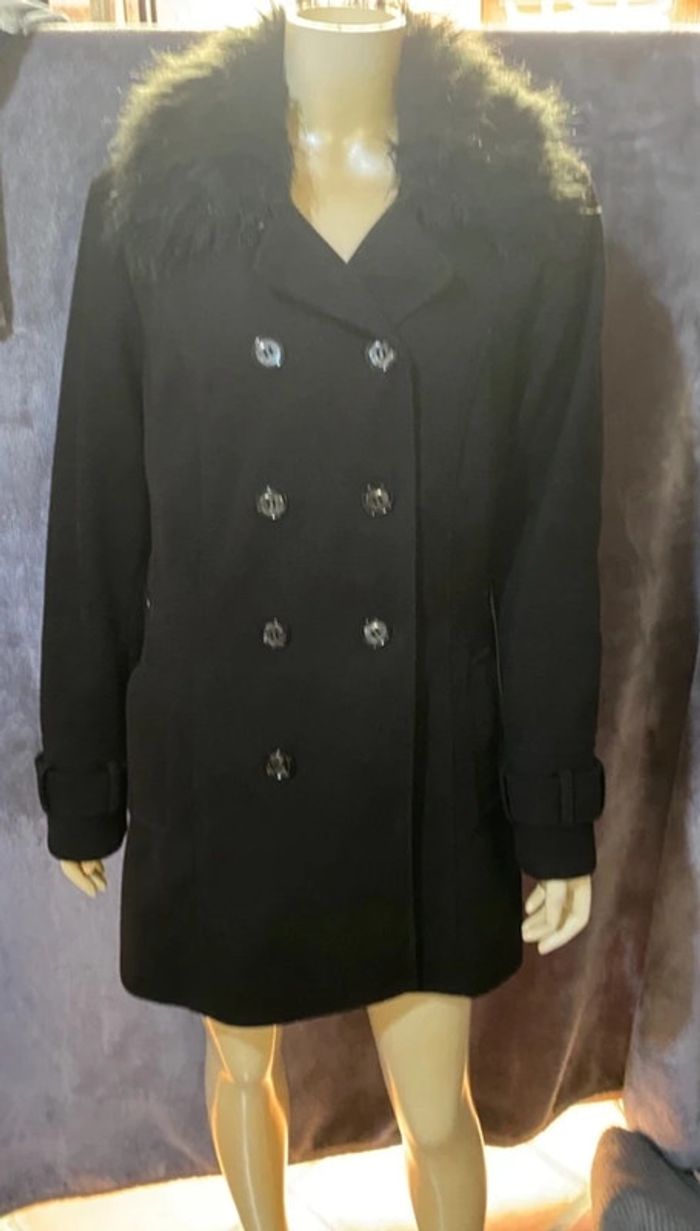 Manteau noir avec col fausse  fourrure  yessica  taille 44 - photo numéro 1