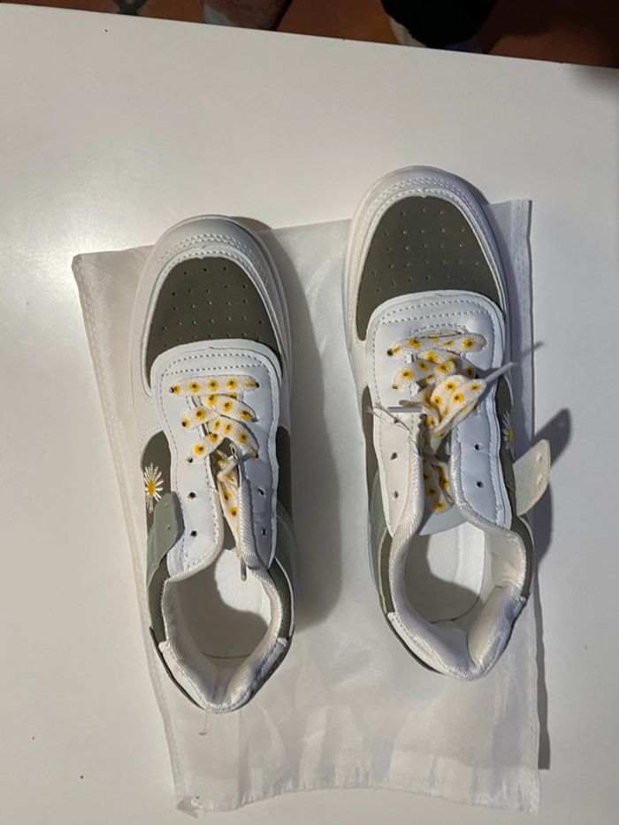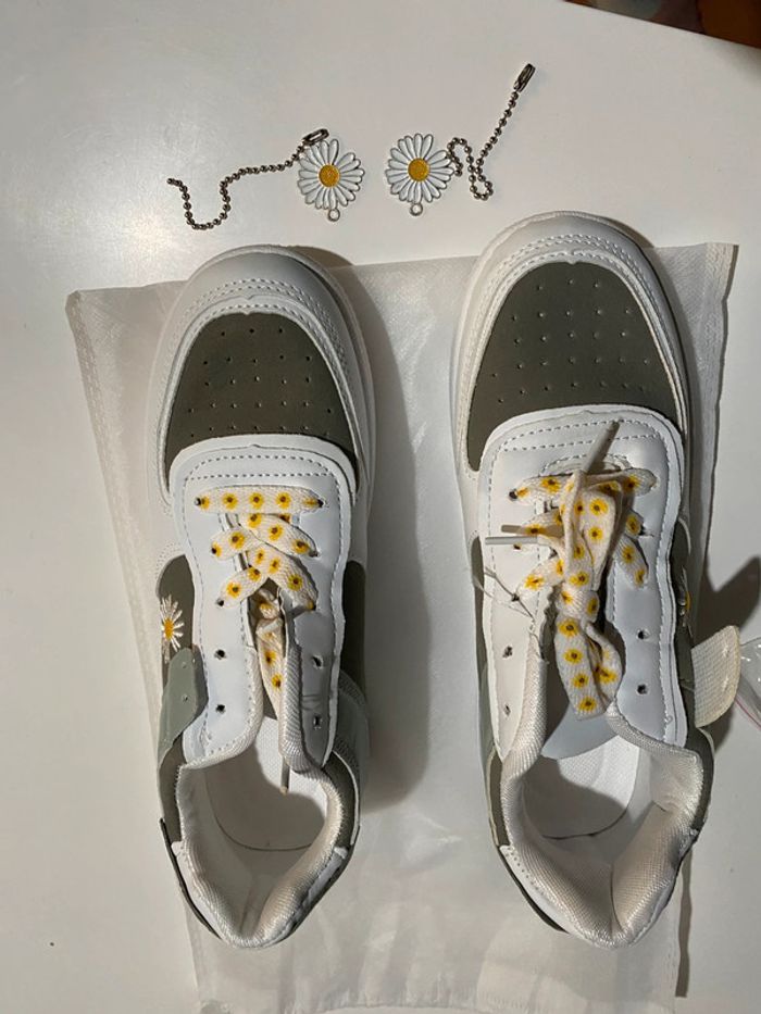 Basket  correaine blanc et gris à motifs fleurs taille 37 - photo numéro 1
