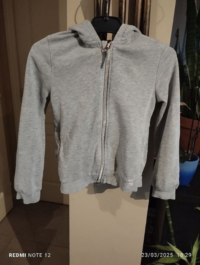 Sweat zippé gris à capuche taille 8 ans marque Kiabi.