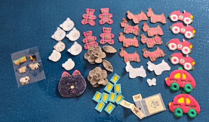 Petit lot d'appliqués et d'étiquettes à coudre.