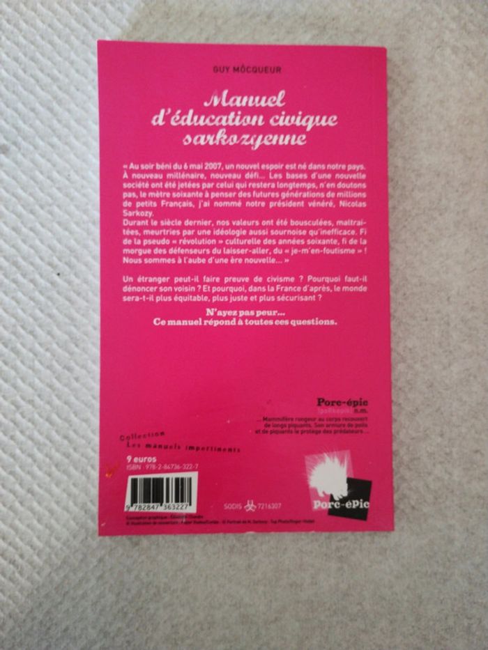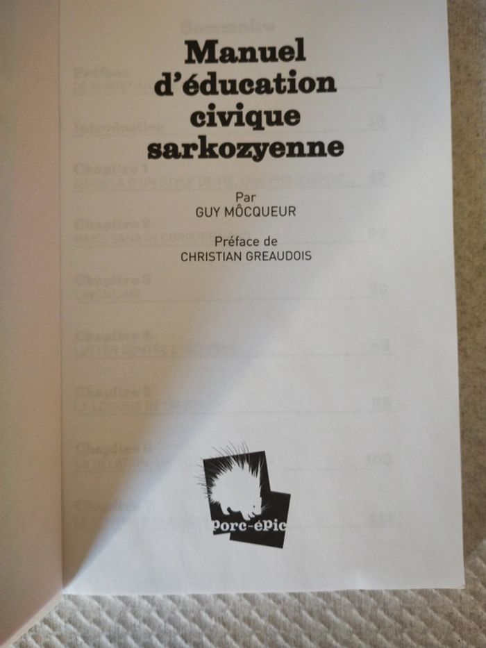 Manuel d'éducation civique sarkozyenne Par Guy mocqueur. Préface de Christian greaudois Édition porc-epic Imprimé en France