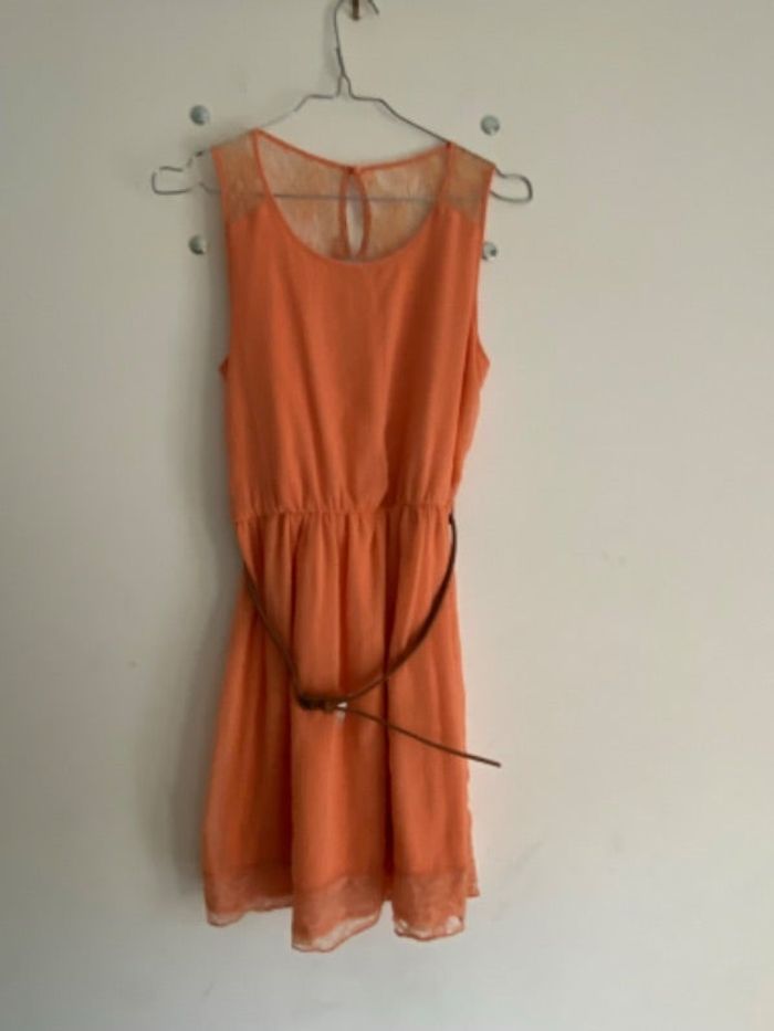 Robe légère avc jupon. La ceinture n’est ps d’origine mais elle était vendu avc une ceinture identique dnc je la laisse avc la robe.