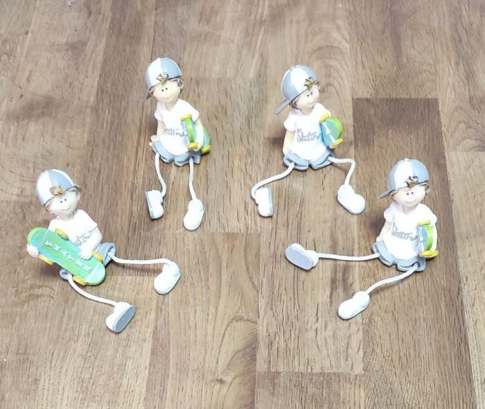 Lot de 4 figurines d'enfants sportifs assises Skater , deco en résine a suspendre. Idéal pour décorer une chambre d'enfant ou autre En très bon état