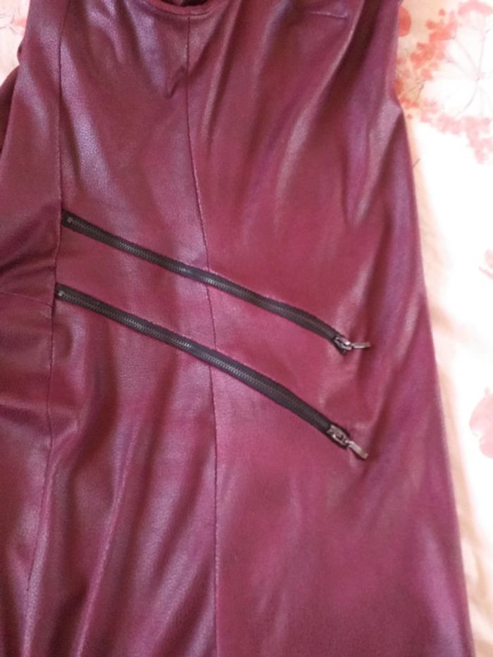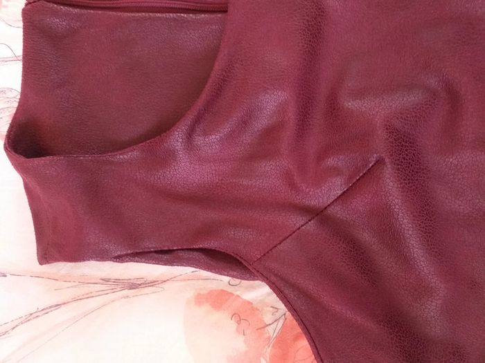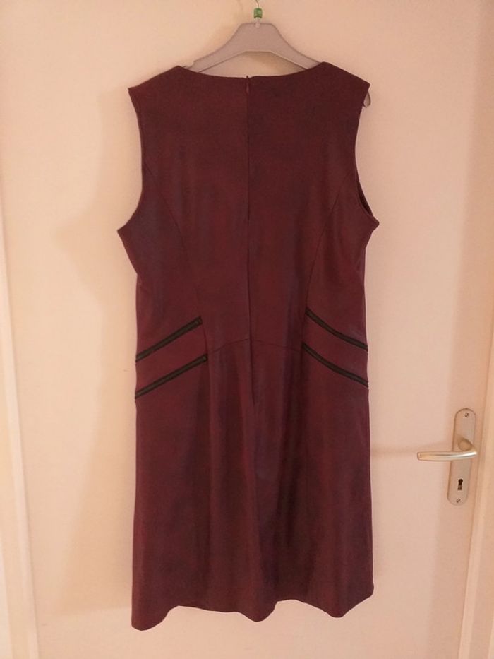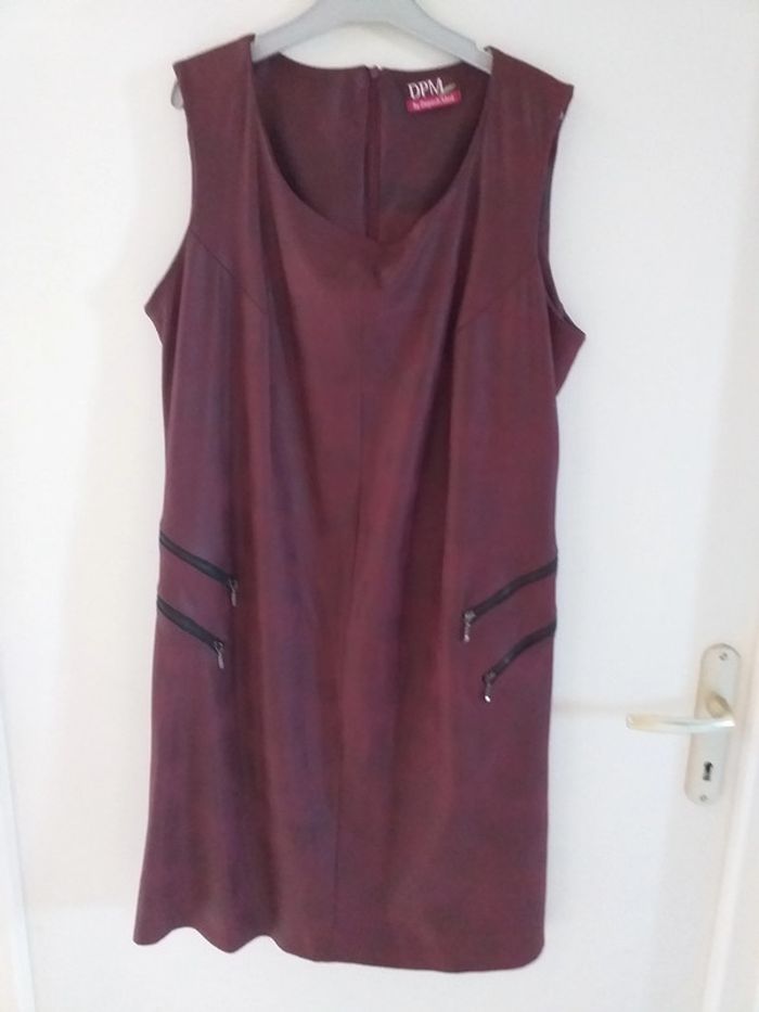 Robe sans manches Marque : DPM Couleur : Bordeaux Tissu effet imitation cuir Taille : 40 Fermeture éclair dans le dos