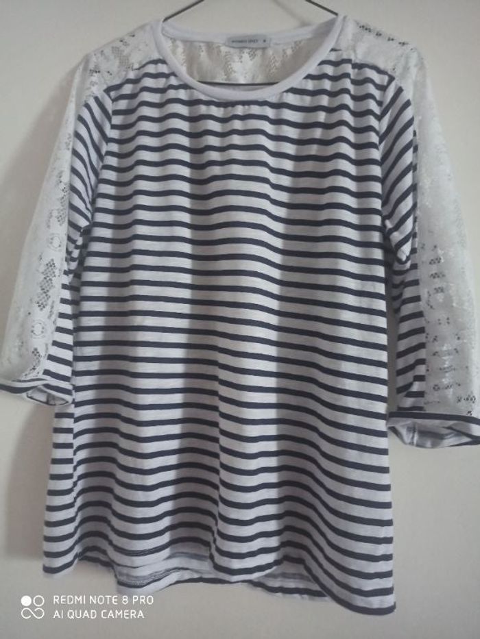 Pull marinière manche dentelle