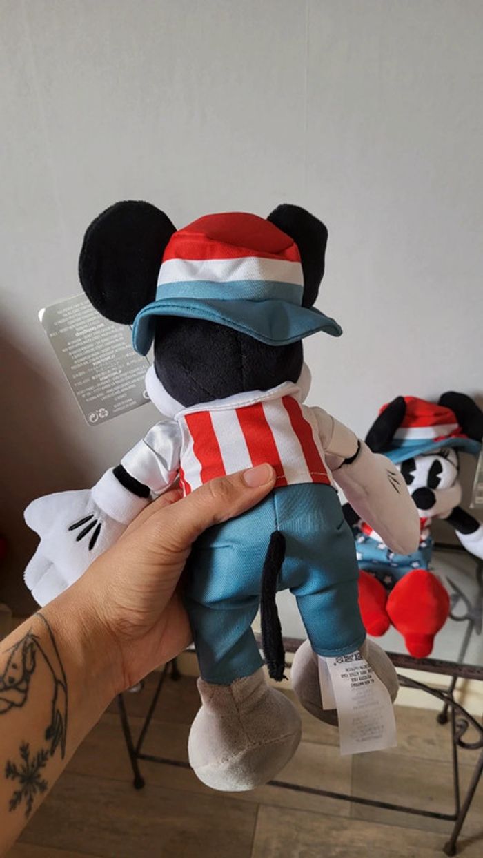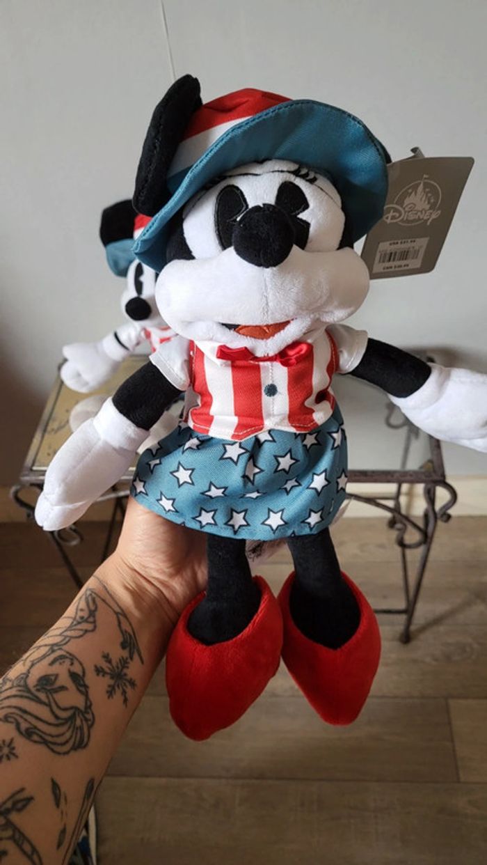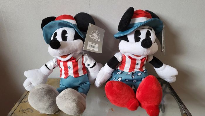 Vends couple de peluches Mickey et Minnie. Vendus ensemble uniquement ! En tenue assortie pour le 4 juillet. Achetées aux USA. Neuves avec étiquettes.