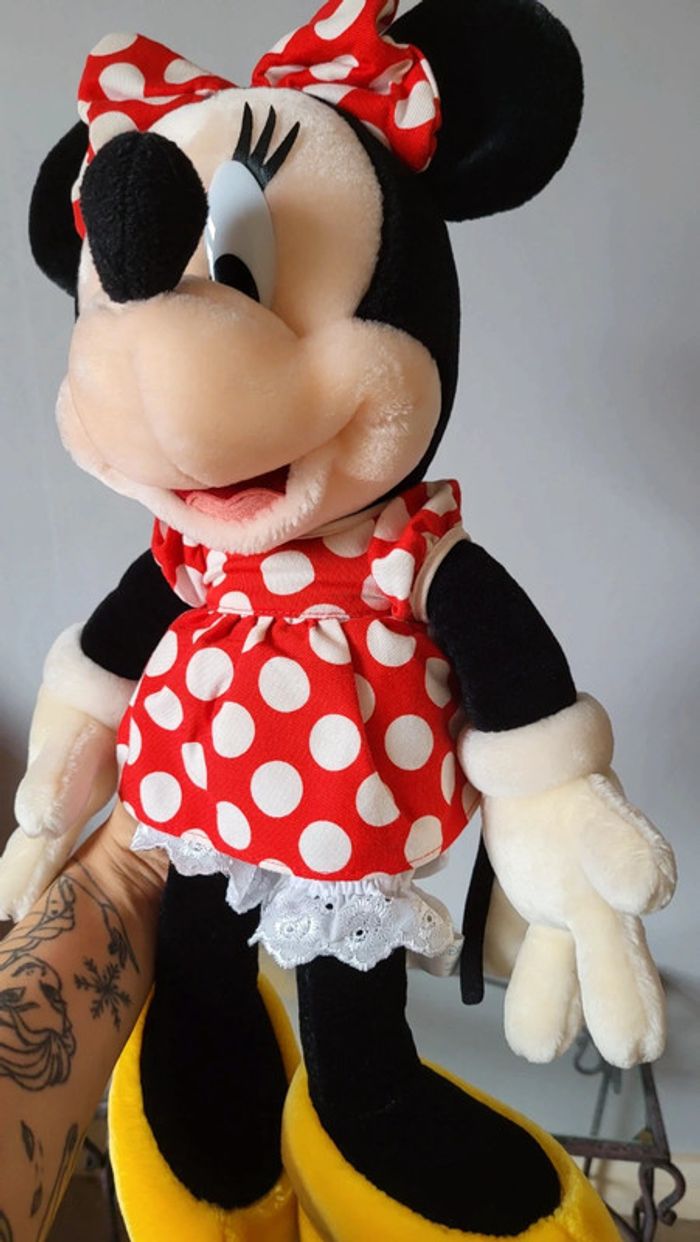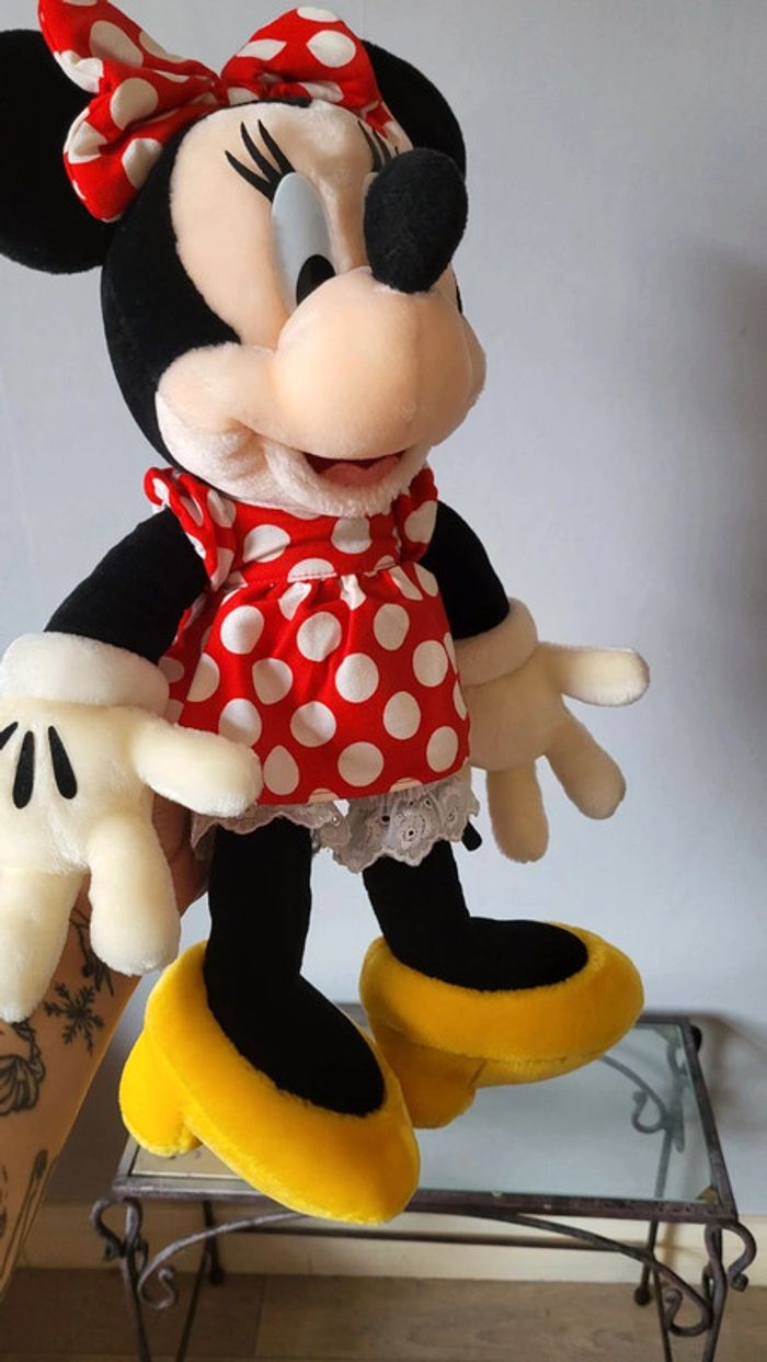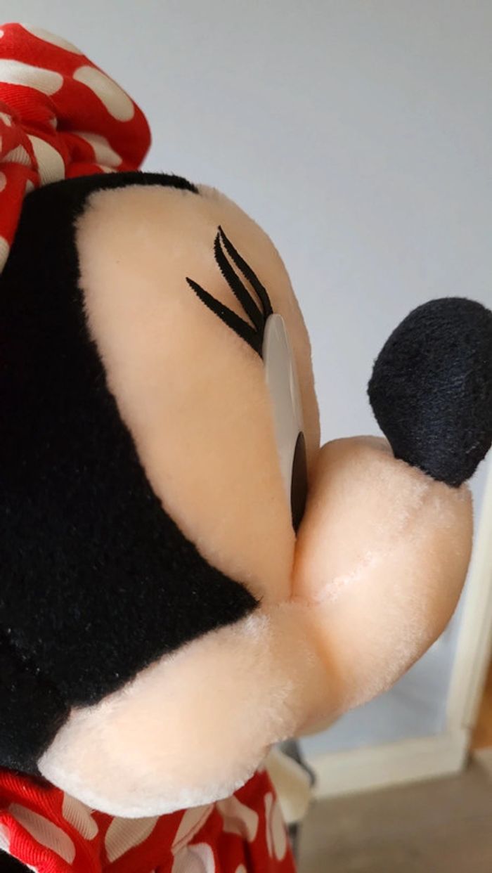 Vends peluche Minnie, grand format. Vintage. Disney Tokyo. Les cils se décollent un peu, et trace de colle sur une des mains (Voir photo). Reste en très bon état tout de même. Environ 45 cm