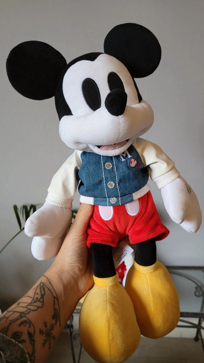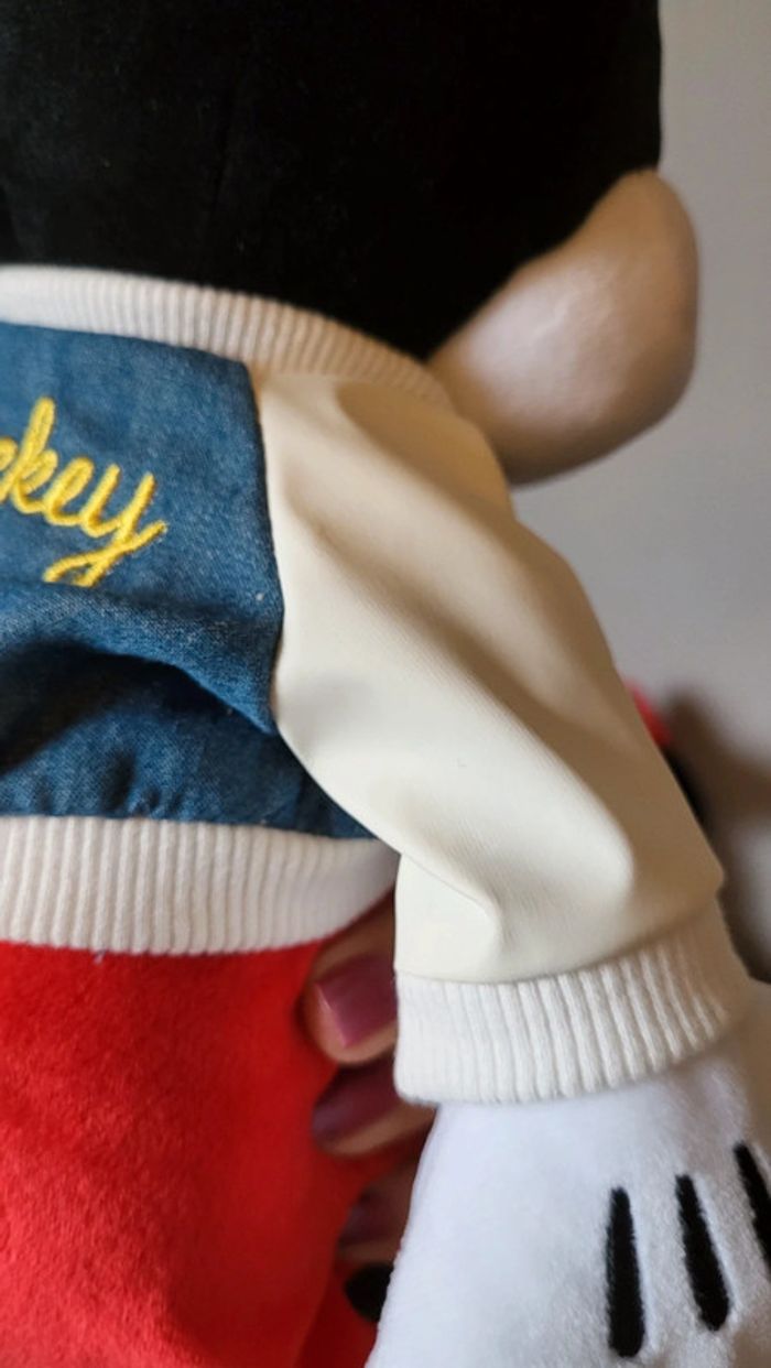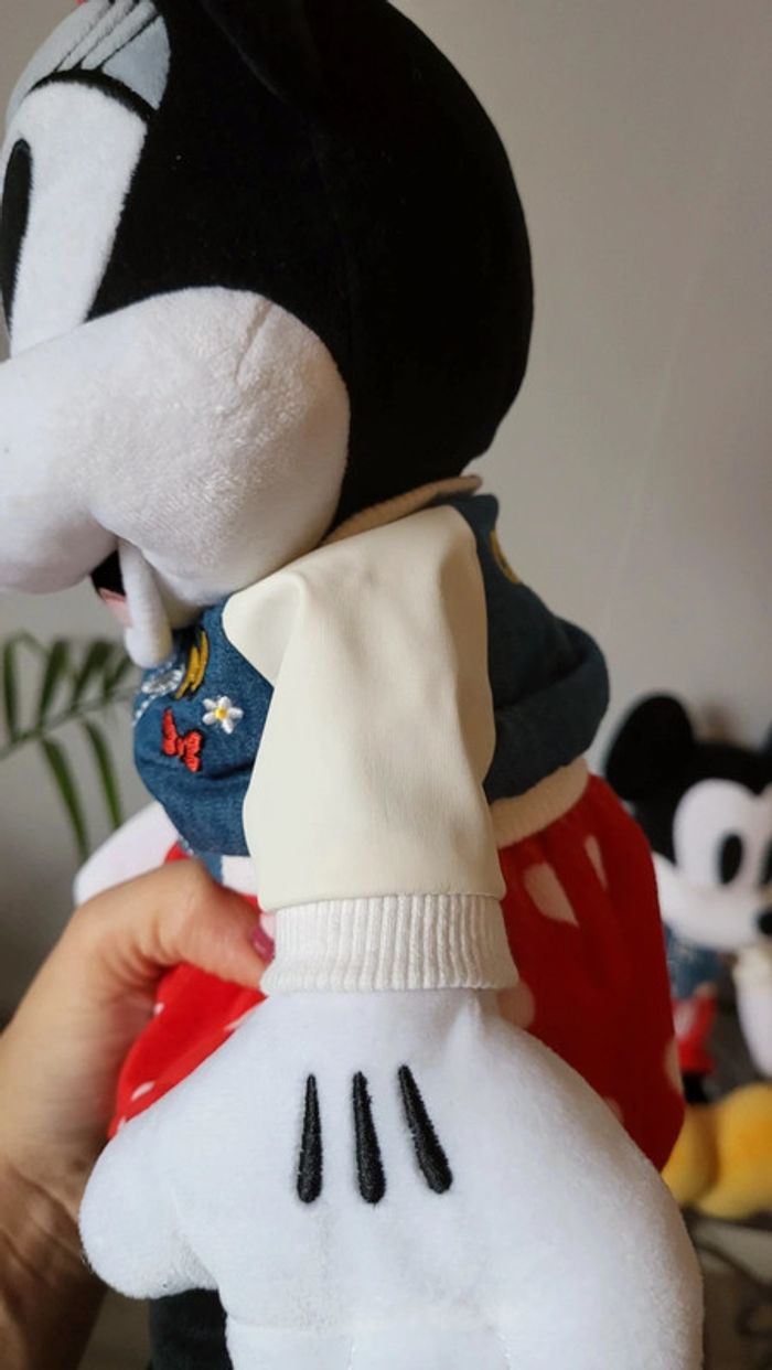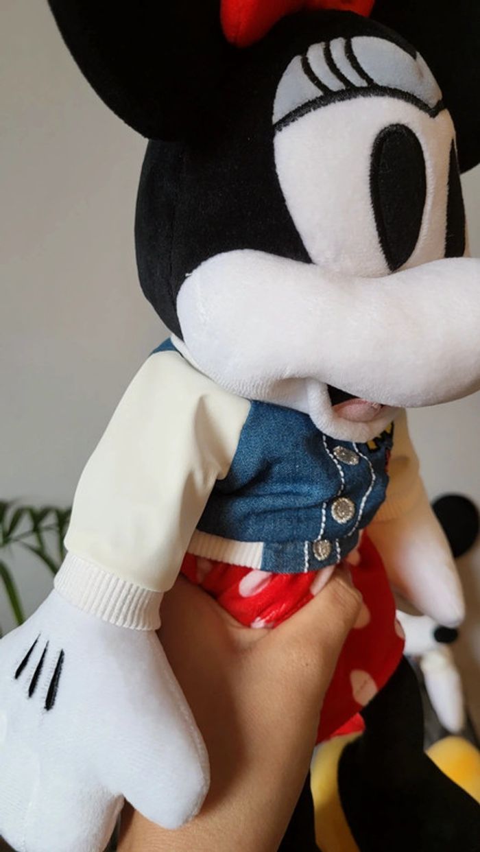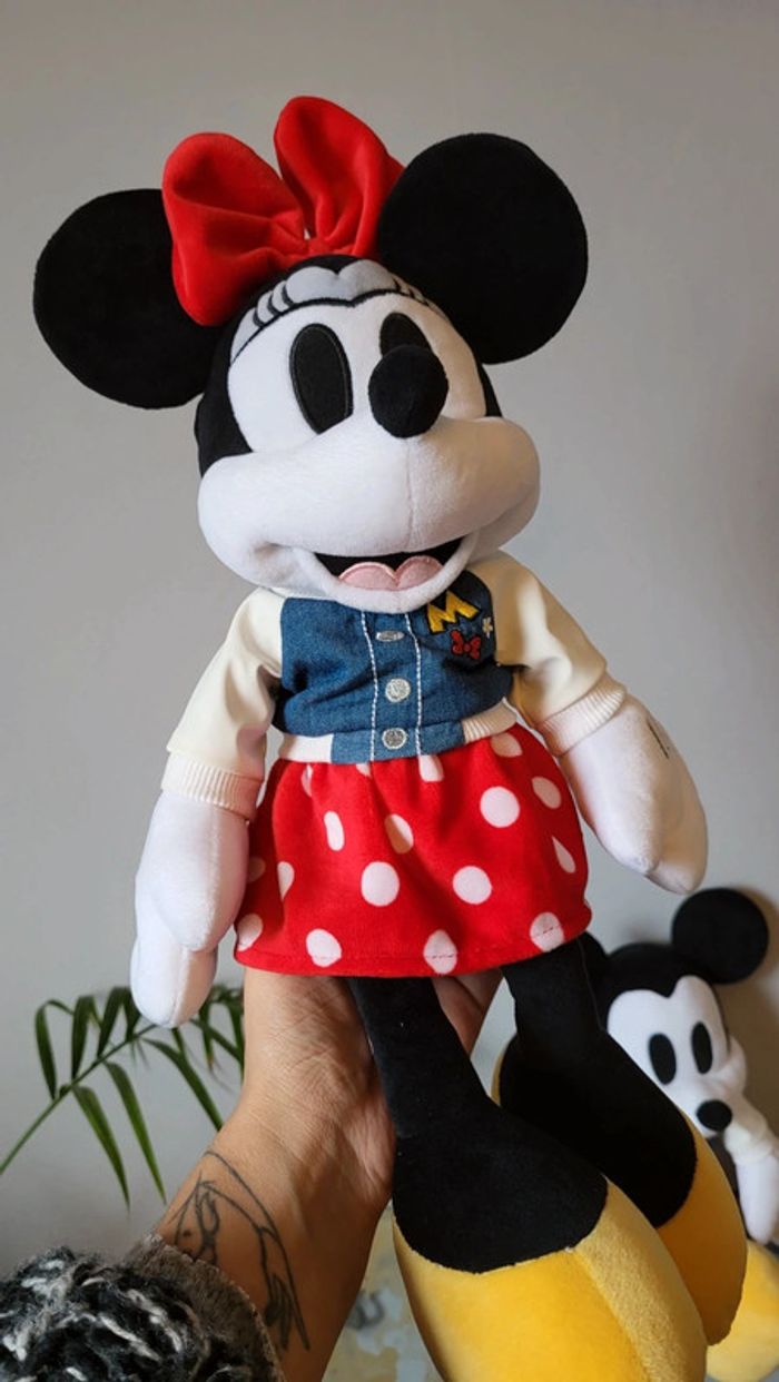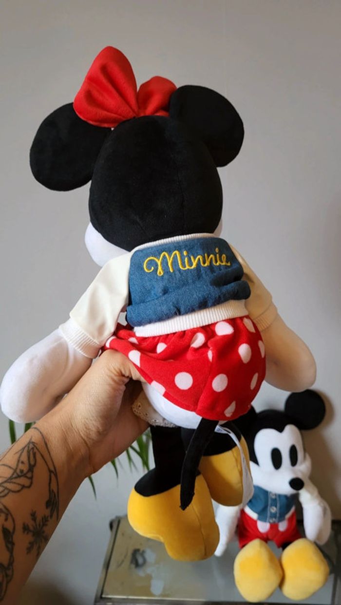 Vends lot de peluches Mickey et Minnie. Vendus ensemble uniquement. Collection Disney Baby. Portent des petites vestes en Jeans à leurs noms. ⚠️ un des bras de Mickey est légèrement abîmé, mais le plastique n'est pas déchiré.
