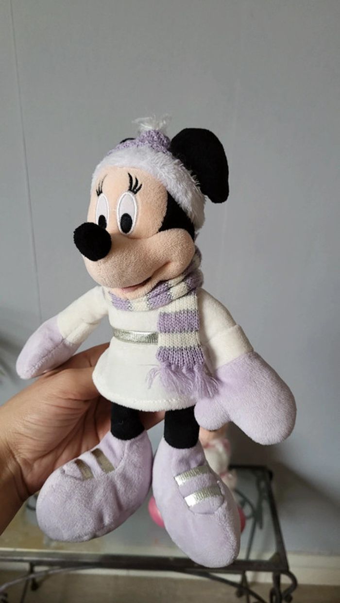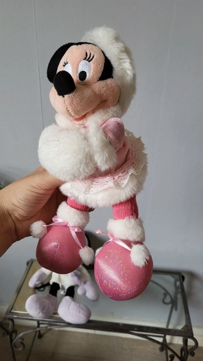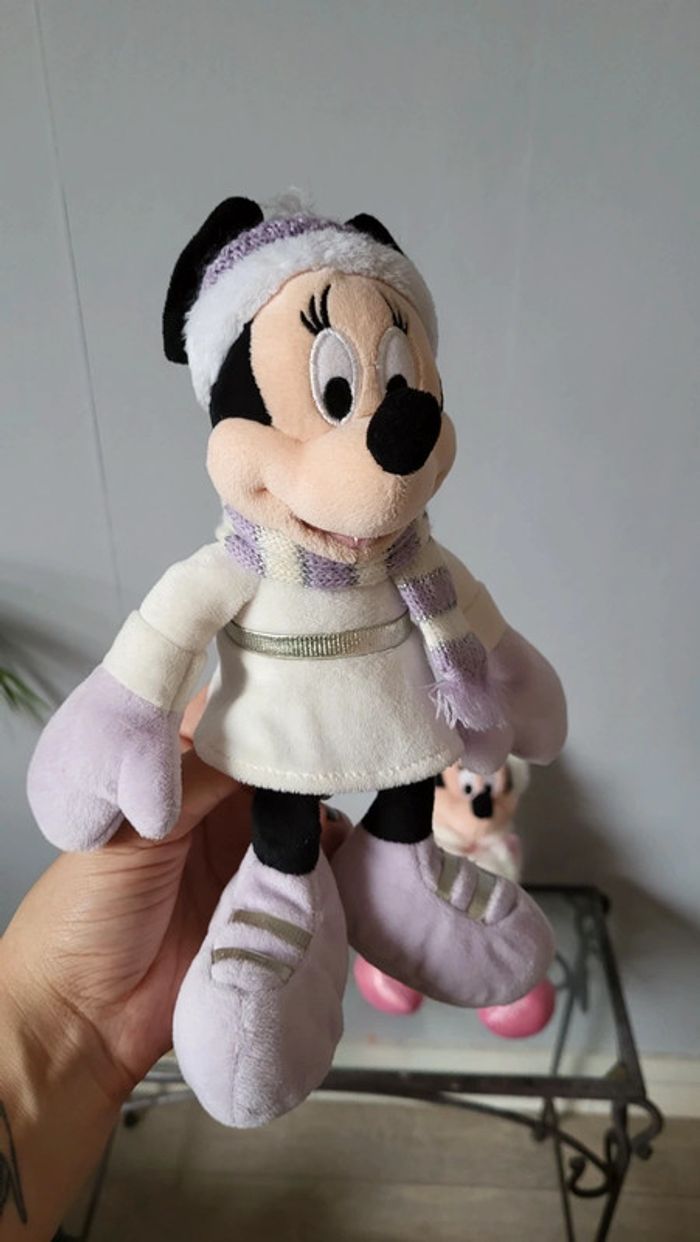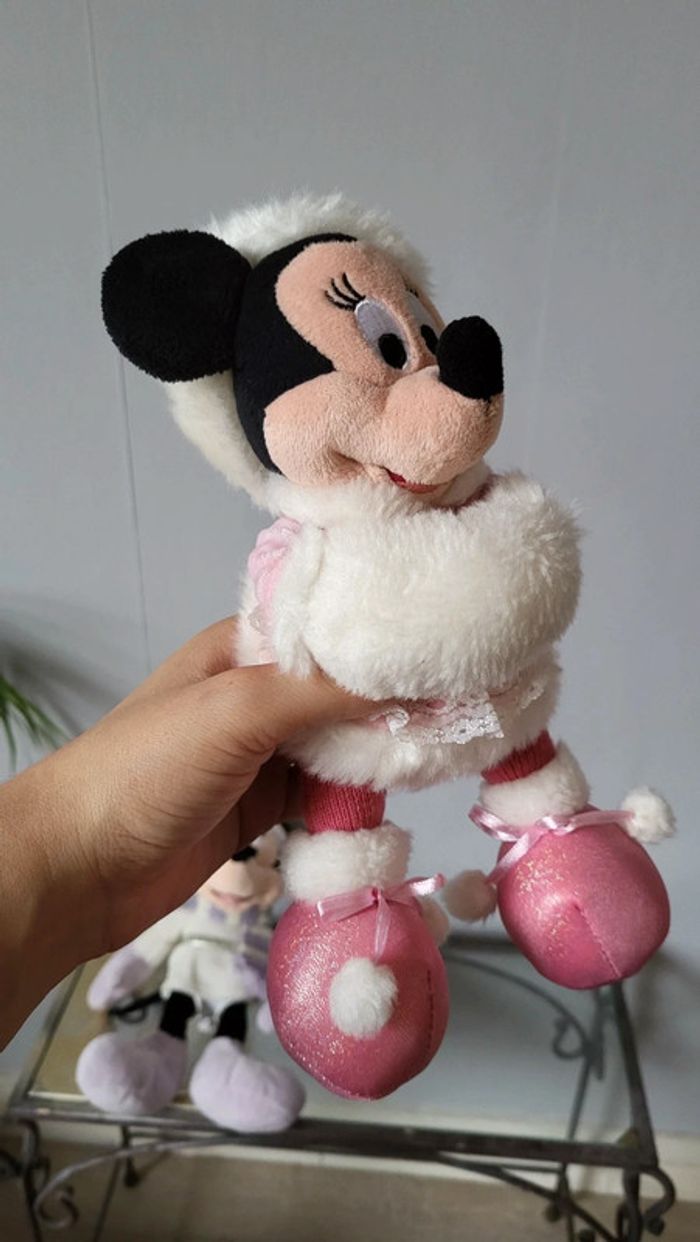 Vends lot de deux peluches Minnie. Tenues hivernales. Bon état. Environ 2o cm. Produit Disney.