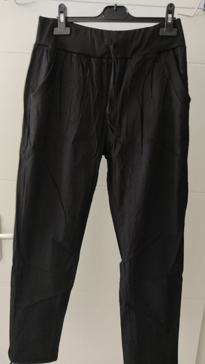 Pantalon noir stretch, taille élastique, bas pouvant être serré. Très bon état. Taille M.