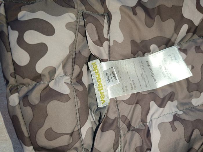 Doudoune légère mi saison taille 10 ans, camouflage, taille 10ans,marque vertbaudet.bon état .