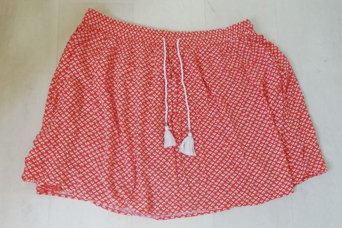 Taille élastique et cordon pour resserrer. Légère. Doublure