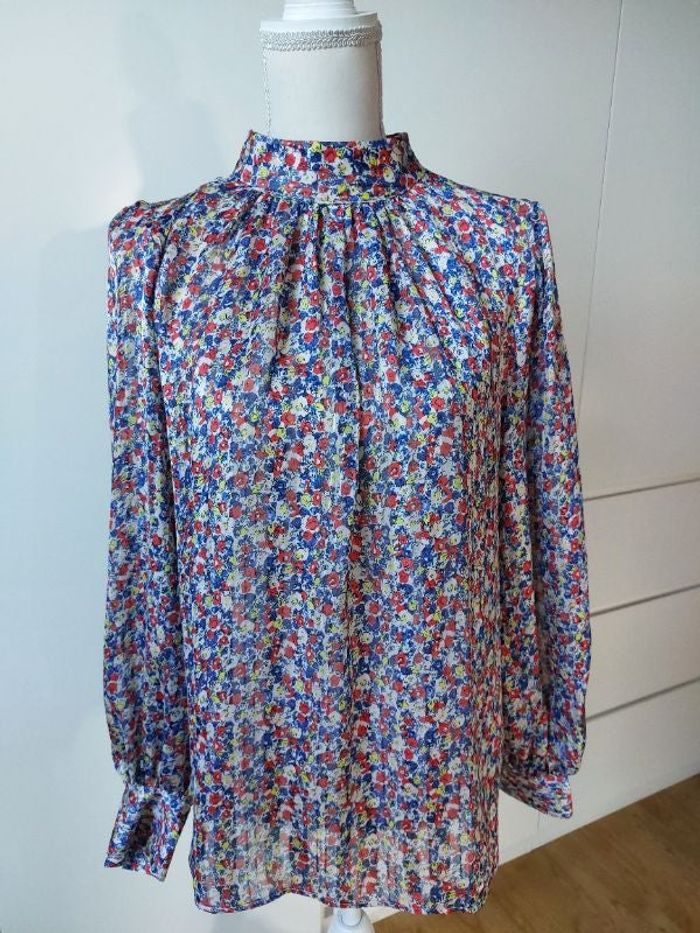 Blouse fleurie en voile légèrement satinée