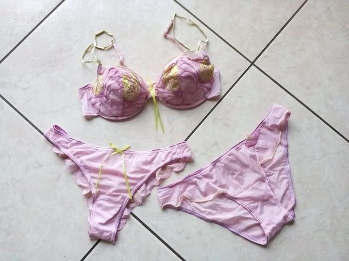 #sev8059femmelingerie Ensemble soutien gorge 90B + tanga + slip en 40 très bon état voir mes autres ventes pour regrouper