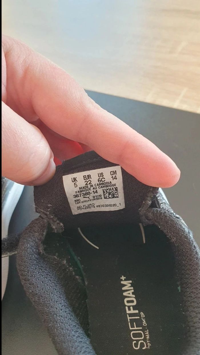 Très bon état général, légèrement abîmé au niveau du haut de la languette (voir photo) Pointure 22 Puma #titegwen_fille_pointure22