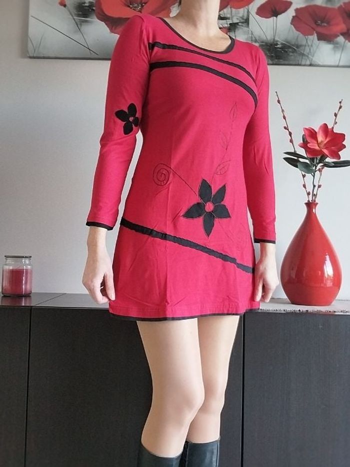 Jolie robe rouge fleur noire