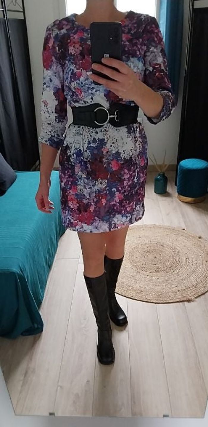 A vendre jolie robe H&M en taille 40. Robe motifs tie and die teintes violine/ violet et. Très seyante, superbe et aspect légèrement satiné au toucher Tbe.