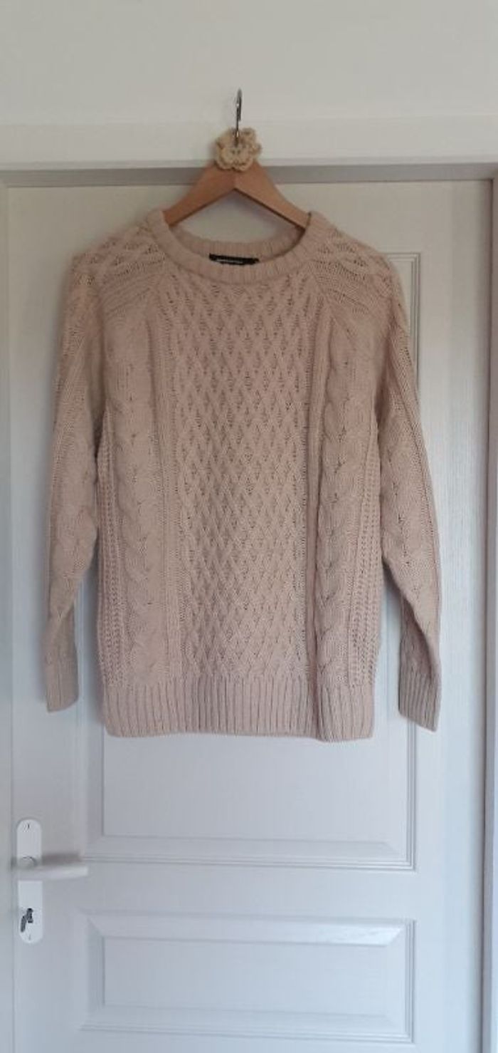 A vendre joli pull beige torsadé en taille 38. OK 36 à 38. Marque American Holic. Comme neuf.