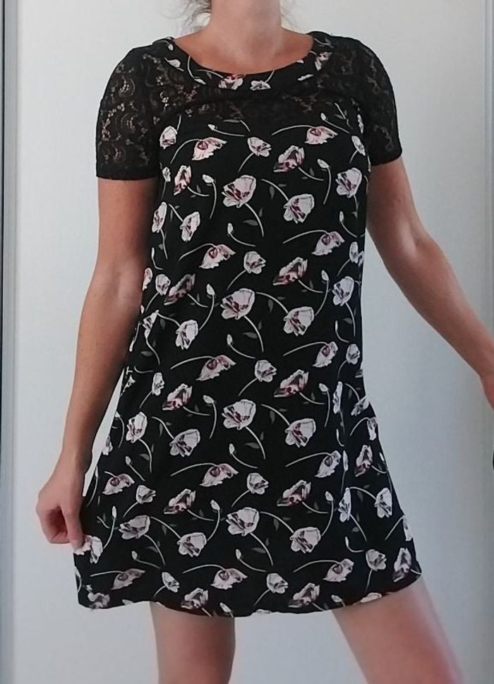 A vendre jolie robe de marque Formul en taille 40. Robe noire avec dentelle sur le haut, fleurie. Fermeture dans le dos par un bouton. Convient d'un 38 à 40. Tbe. Vendu sans la ceinture de présentation.13 eur.