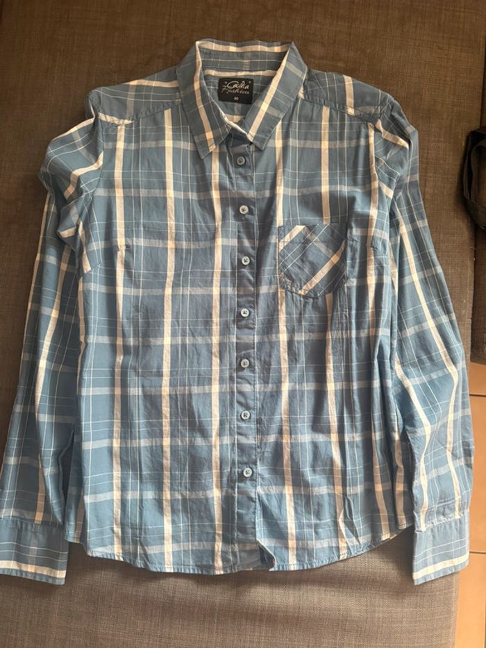 Chemise manches longues à carreaux bleu, très bon état Taille 40 #taillelfemme_marionrck91