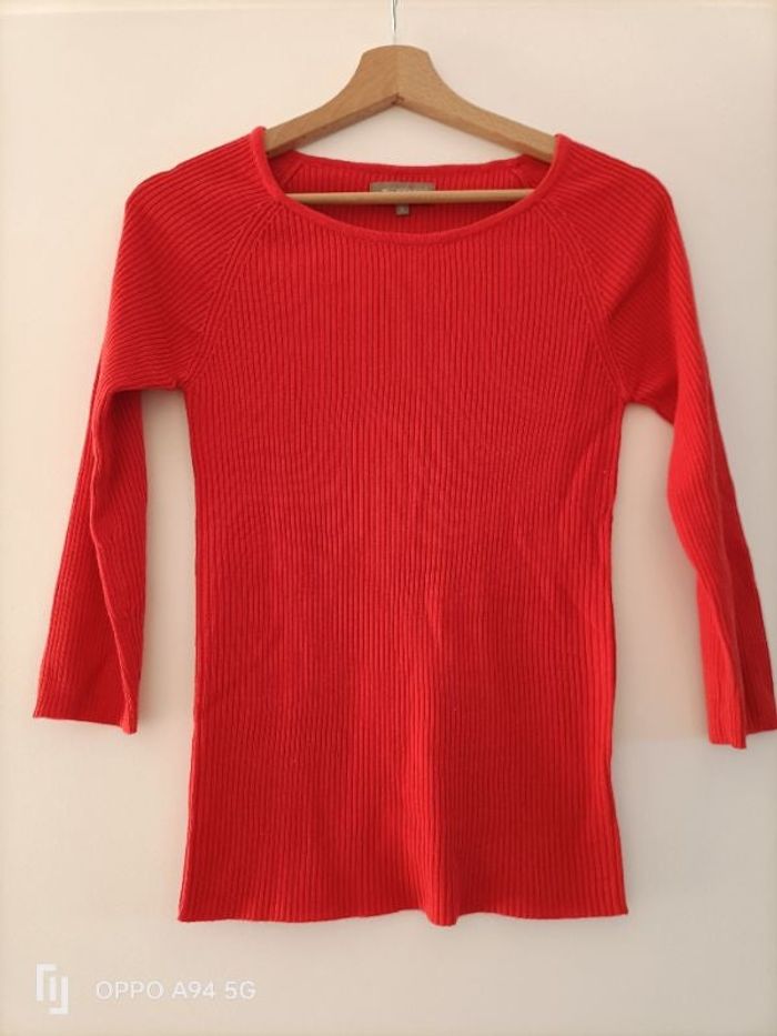 Pull fin côtelé Manche 3/4 Neuf jamais porté Orange Étiquette coupée in extenso Taille M taille petit Largeur 34 longueur 57 #3