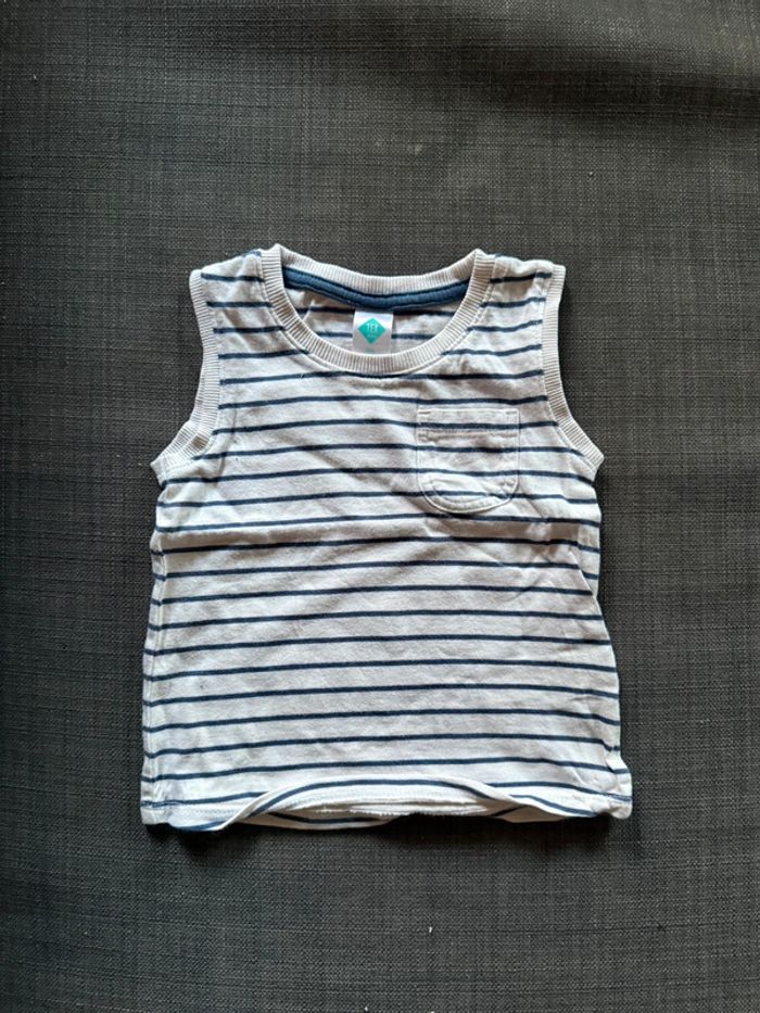 Débardeur rayé blanc et bleu marine Tex, très bon état Taille 9 mois #9moisgarçon_marionrck91