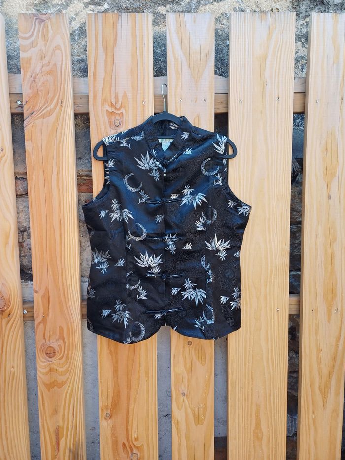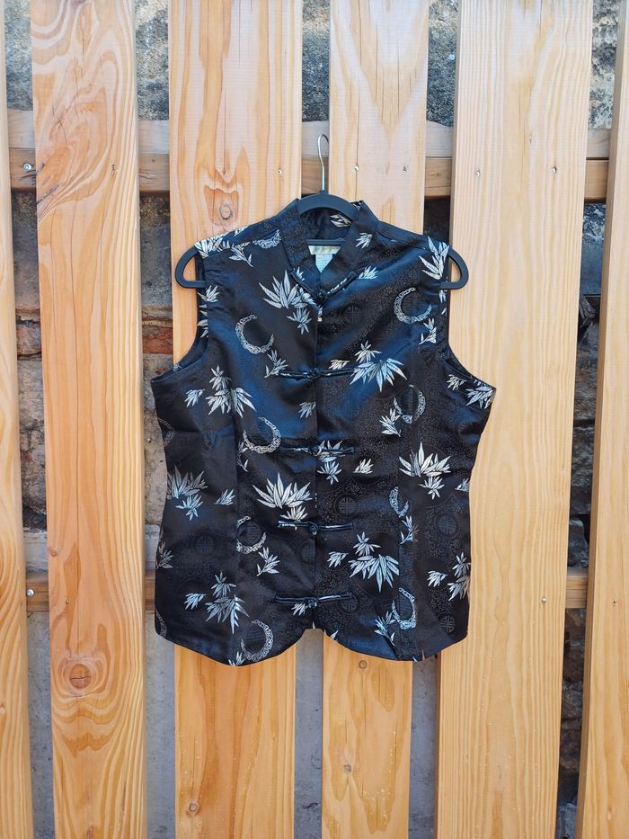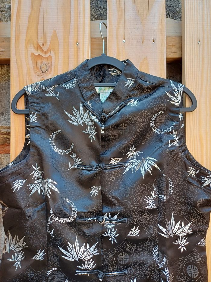 🏷 Marque : Jade Jade Jade (made in Macau) ✂️ Catégorie : Haut, débardeur, top, haut asiatique, débardeur asiatique, gilet sans manches 📒 Détails : Belles finitions et qualité 🧶 Matière : Rayon et nylon 🎨 Couleur : Noir et motifs argentés 🪡 État : En excellent état 📏 Taille : L 📐 Mesures : Longueur : 62 cm Largeur aisselle à aisselle : 51,5 cm 💬 N'hésitez pas à me poser toutes vos questions 📦 Envois rapides et soignés, ok tout transporteur 🎁 Réduction sur les lots