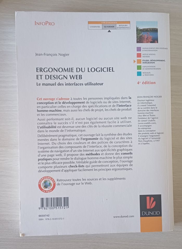 Un ouvrage de référence dans le domaine de l’ergonomie et de l’interface utilisateur. Jean-François Nogier, reconnu pour ses travaux sur l’expérience utilisateur (UX) et l'interface homme-machine, partage des méthodes éprouvées et des exemples concrets pour concevoir des interfaces web intuitives et efficaces. 📚 Idéal pour tous ceux qui souhaitent maîtriser : Les principes UX/UI pour améliorer la satisfaction et la productivité des utilisateurs Les techniques de design centré utilisateur, ergonomie cognitive, structure de l’information Les bonnes pratiques pour équilibrer esthétique visuelle et fonctionnalité 💡 Un livre essentiel pour les développeurs, designers, ou étudiants cherchant à approfondir leur approche centrée utilisateur et aborder le design avec rigueur.