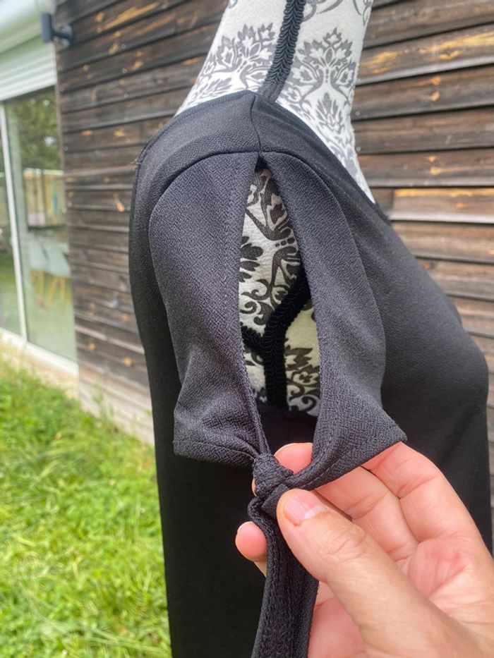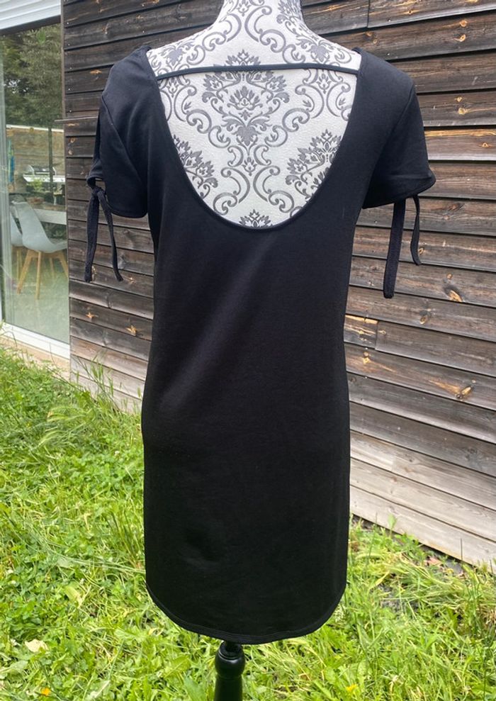 Jolie robe femme Noire Col arrondi Petites manches ouvertes avec cordon Dos nu avec cordon