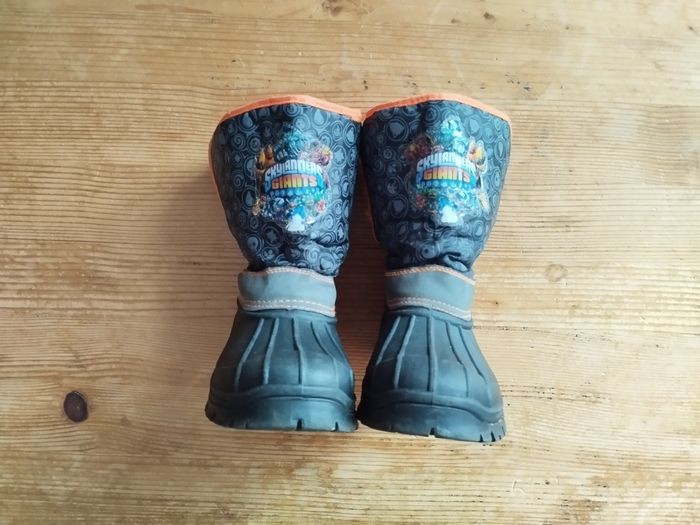 Bottes de neige pour enfant à l'effigie de Skylanders Giants, taille 32. Parfaites pour l'hiver, ces bottes sont chaudes, imperméables et dotées d'une semelle antidérapante pour une meilleure adhérence. Très bon état, prêtes à affronter la neige et le froid !