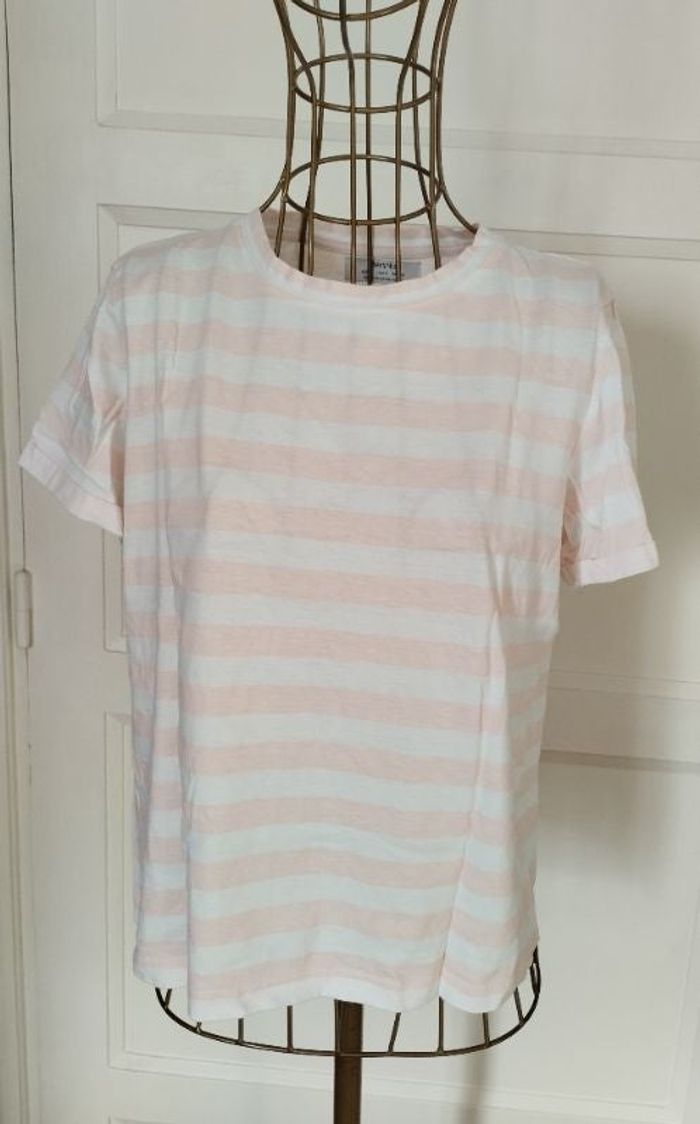 T-Shirt à Rayures Bershka - Rose Pâle - Taille S - TBE