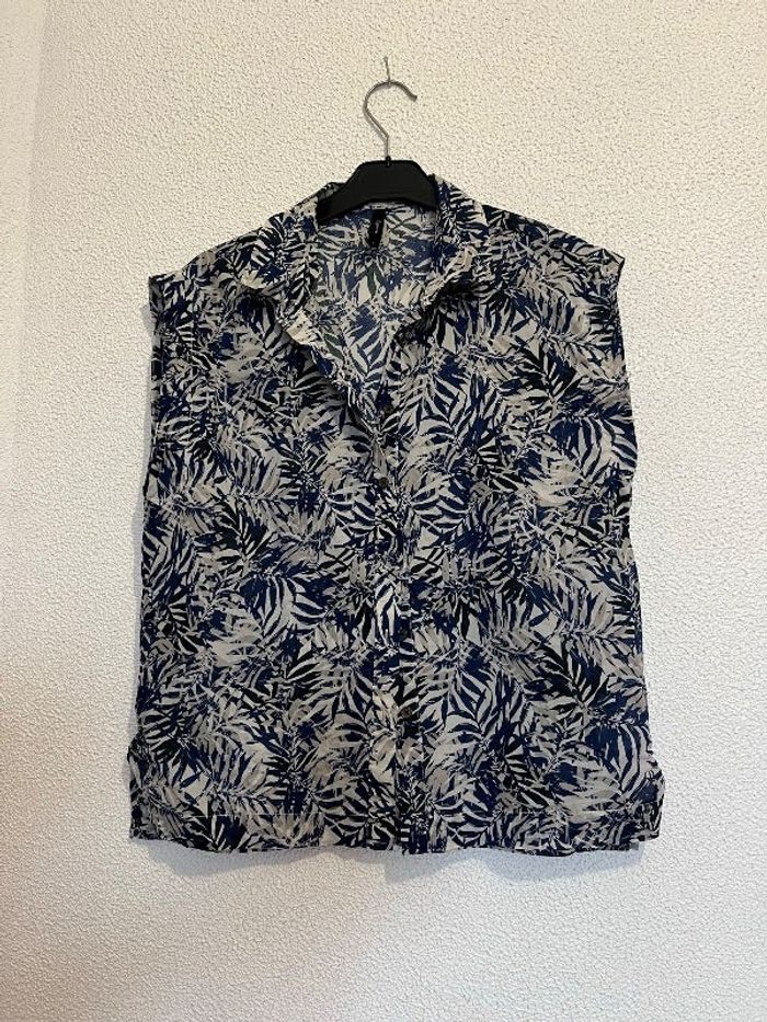Chemisier sans manches, ample Peu porté excellent état Taille S pouvant être convenir pour 38/40 Textile coton très léger idéal pour l’été Longueur 60 cm