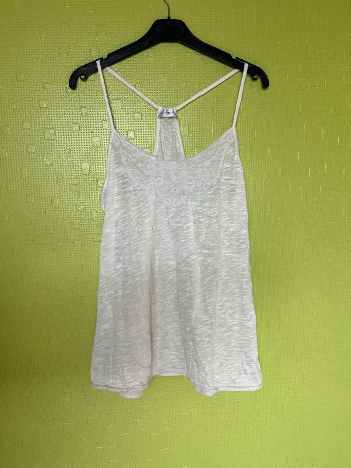 Très bon état Couleur écru Pour la taille convient à 38/40 Textile léger, pour la transparence voir dernière photo Longueur 62 cm