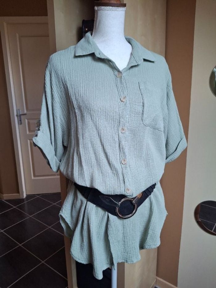 Chemise tunique kaki clair gaz de coton L/XL neuve