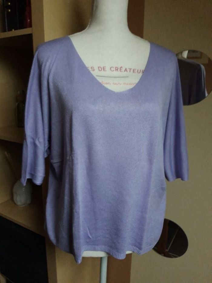 Joli pull en mailles fines col V taille unique neuf jamais porté couleur lilas parme mauve