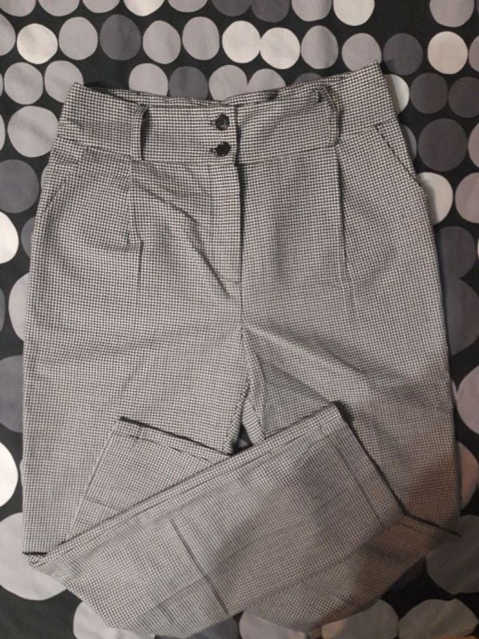 Pantalon droit, élégant, motifs vichy noir et blanc, taille s, comme neuf car très très peu porté