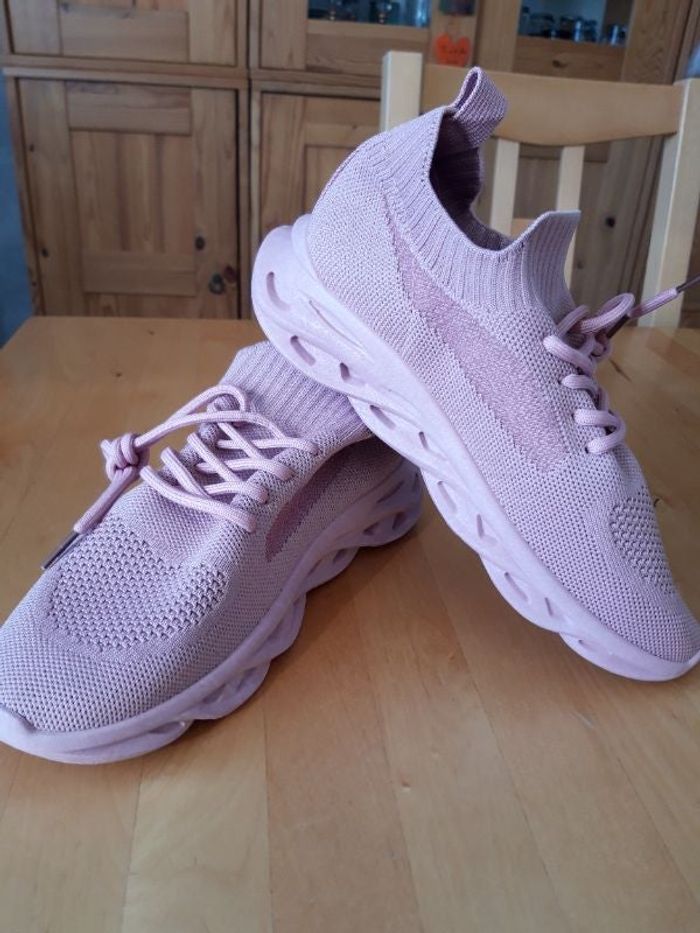 Baskets chaussettes super confortables , respirantes et légères, couleur rose clair, pointure 38, neuves jamais portées. On est comme dans des chaussons dedans !